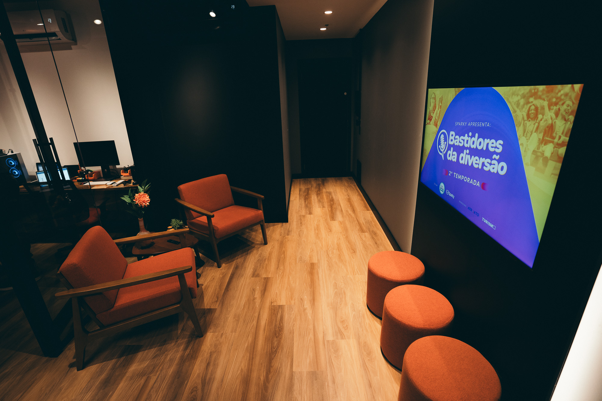 Um estúdio profissional pensado para atender formatos como Mesacast e Poltronacast, oferecendo uma experiência completa e personalizável para diferentes tipos de conteúdo, incluindo EAD e gravações corporativas.